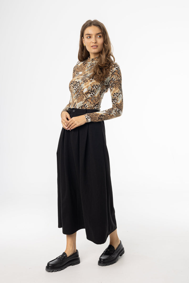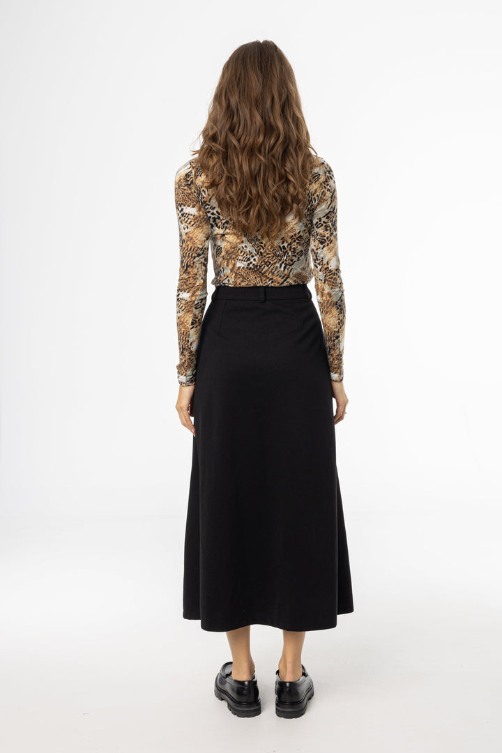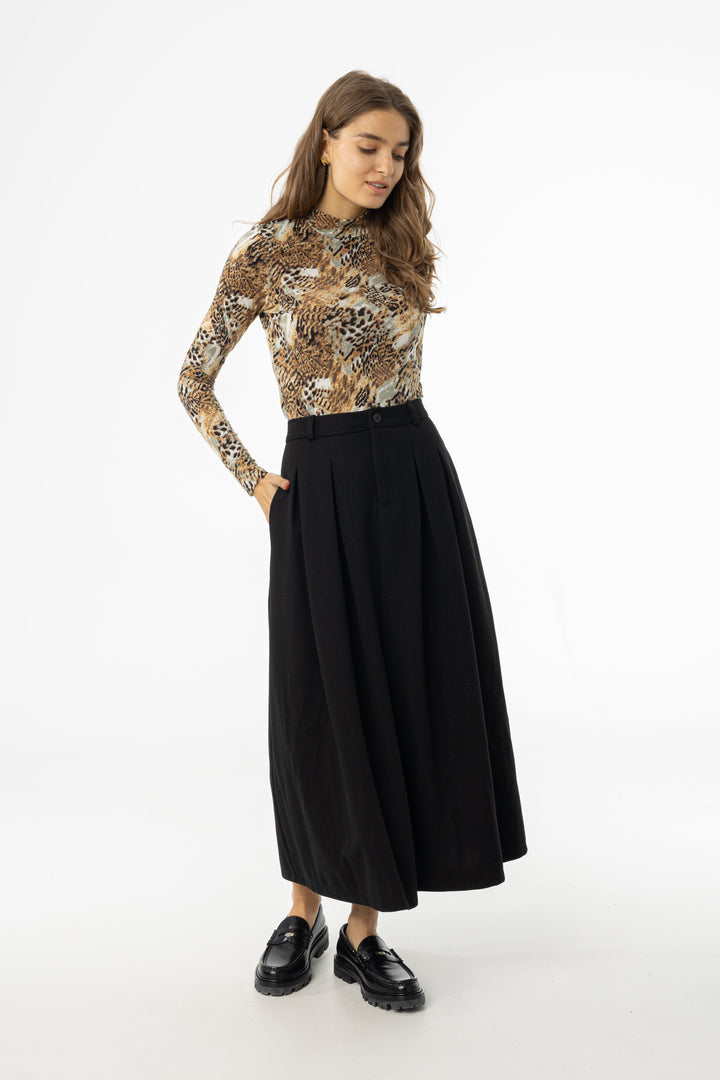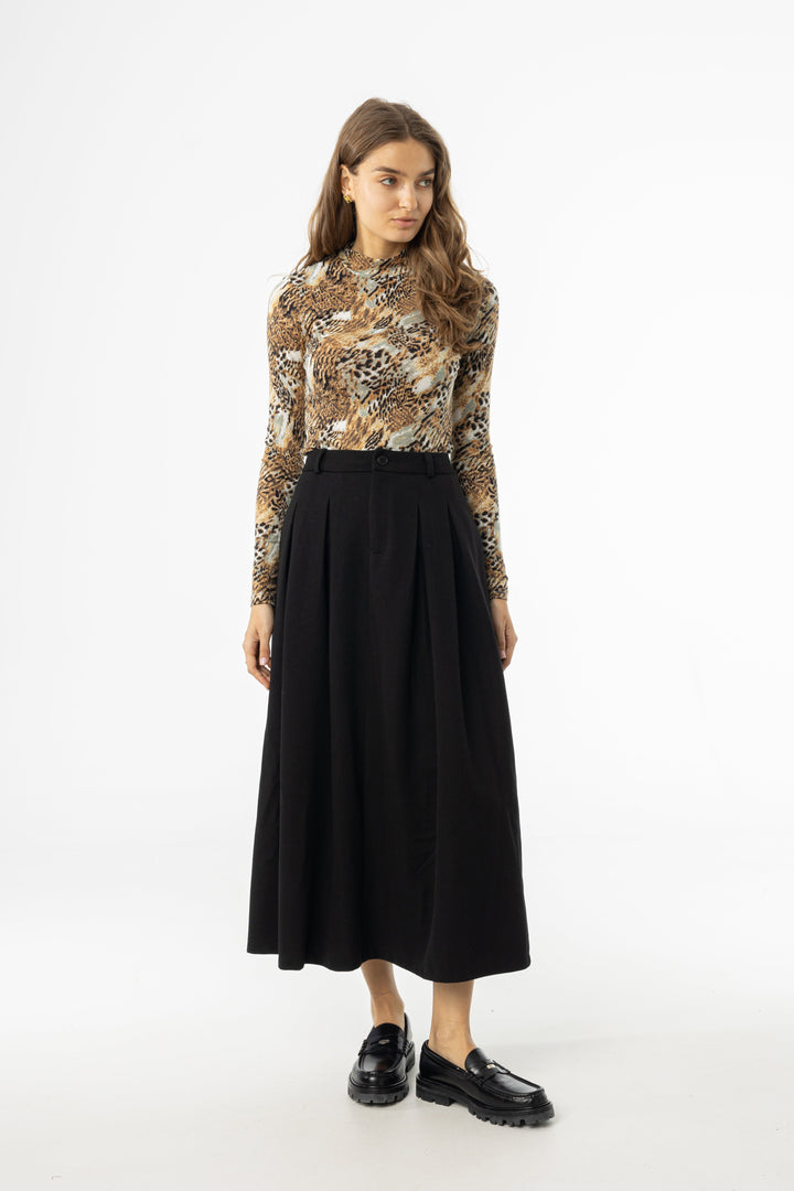 This skirt knows how to do both structure and flow. Pleats in the front keep it crisp, while the flare gives you movement with every step. It’s polished enough for day plans and relaxed enough for casual nights. Wear it with a fitted top and loafers to balance it all out.