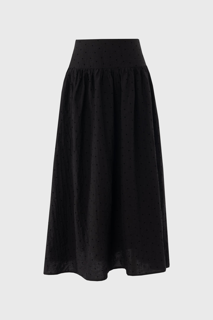 Velvet, but with a playful twist. The dot pattern gives it character, while the maxi length makes it feel elevated. Perfect for holiday dinners, but just as easy to tone down with a fitted top. A skirt that can do festive and everyday with ease.