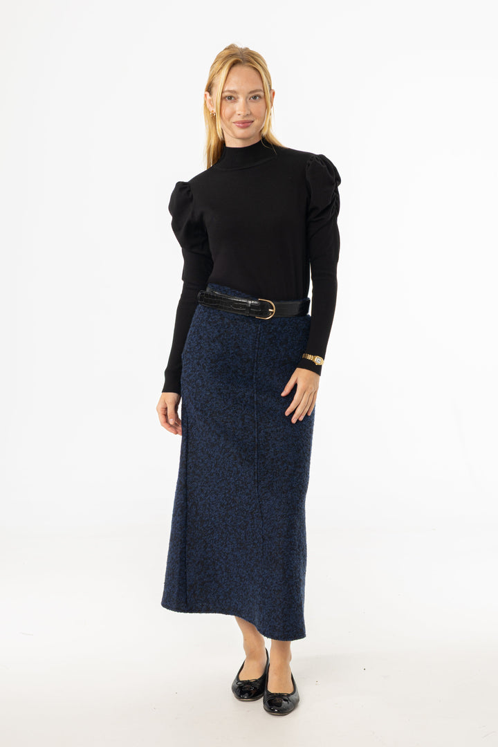 Our Boucle Maxi Skirt is crafted from soft, textured boucle fabric, this skirt features a flowing maxi silhouette that combines comfort with effortless style. The rich blue hue adds a sophisticated pop of color, making it perfect for both casual and dressed-up occasions.