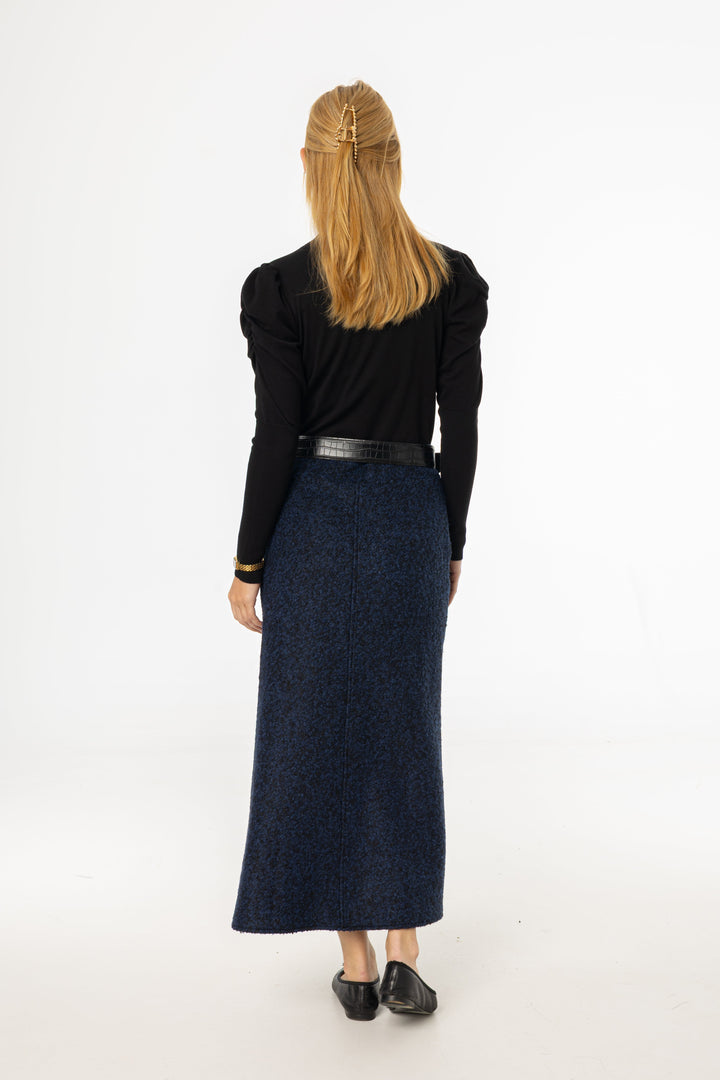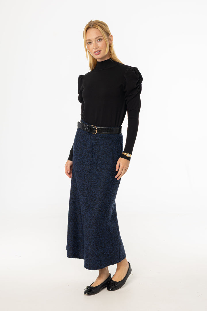 Blue Boucle Textured Maxi Skirt with Flowy Shape and Cozy Seasonal Fabric Feel