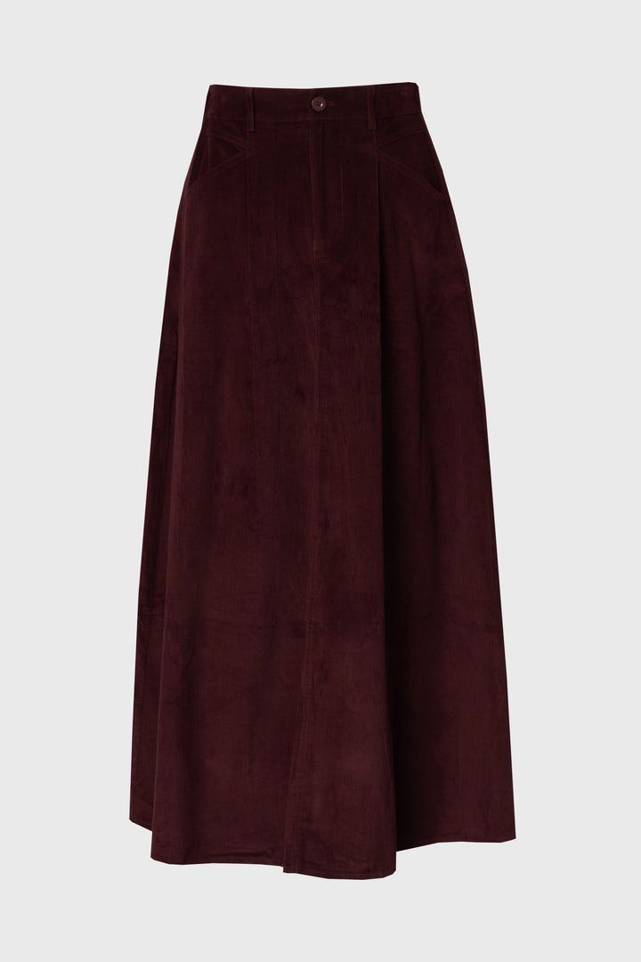 Burgundy Cargo Corduroy Maxi Skirt with High Waist Design and Seasonal Warm Texture