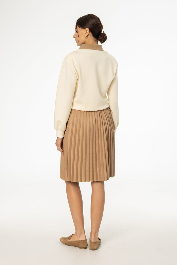 Camel Accordion Microsuede Skirt with Soft Pleats and Luxurious Touch for Elegant Outfits