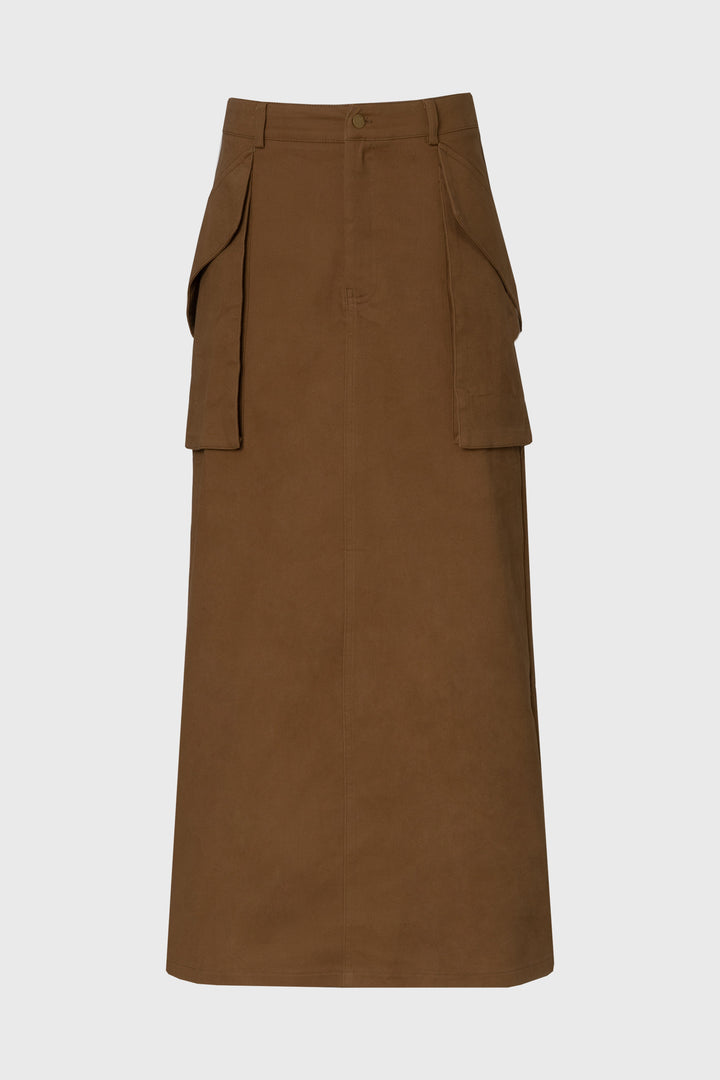 Camel Pocket Utility Cargo Skirt with Multiple Pockets and Adjustable Waist Fit