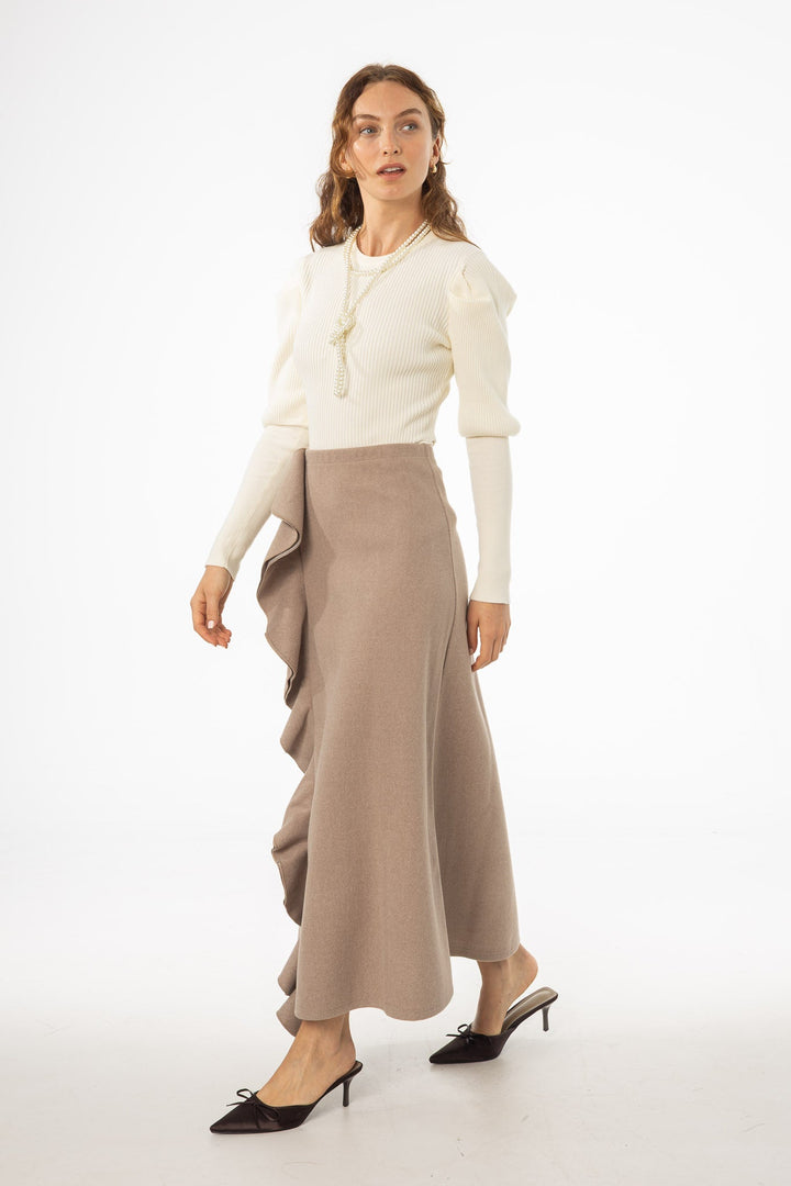 Ruffle Wool Maxi Skirt